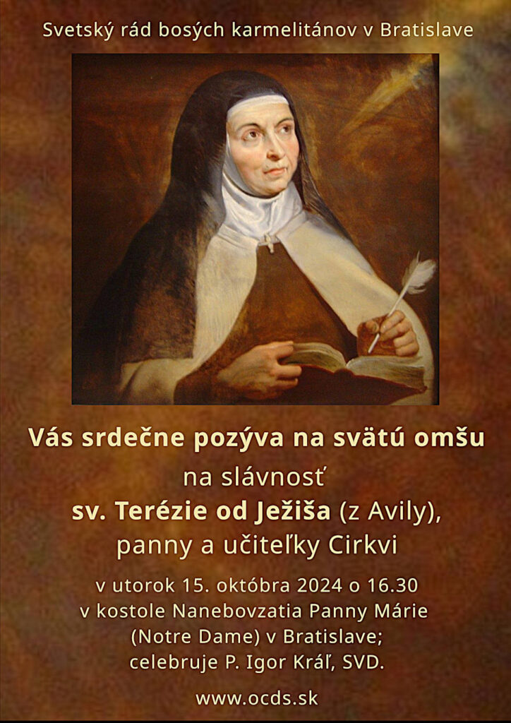 Vás srdečne pozýva na svätú omšu na slávnosť sv. Terézie od Ježiša (z Avily), panny a učiteľky Cirkvi